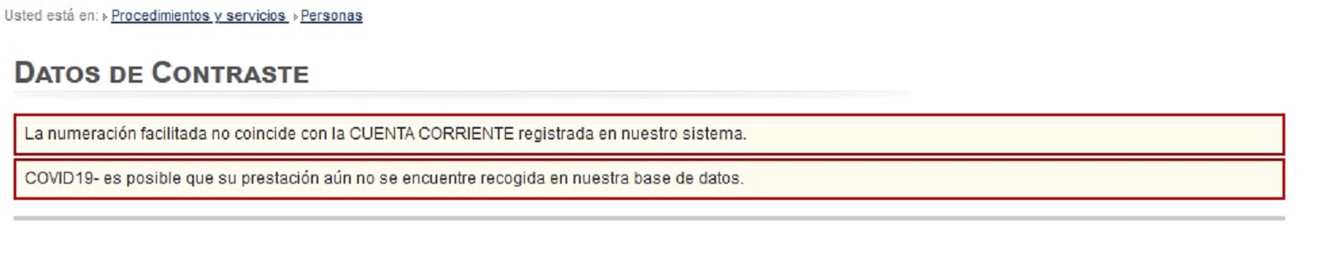 Si contiene algún error, podrá solicitar una cita https://sede.sepe.gob.es/contenidosSede/generico.do?pagina=proce_ciudadanos/cita_previa.html con el fin de que subsanen los posibles errores que contengan los datos facilitados o ponerse en contacto con el número de teléfono 924990578. Siendo esta la vía más rápida y una de las opciones para cambiar el número de cuenta. Este trámite lo ha de realizar directamente la persona afectada, ya que ha de realizar una grabación de voz con el cambio del número de cuenta correcto.